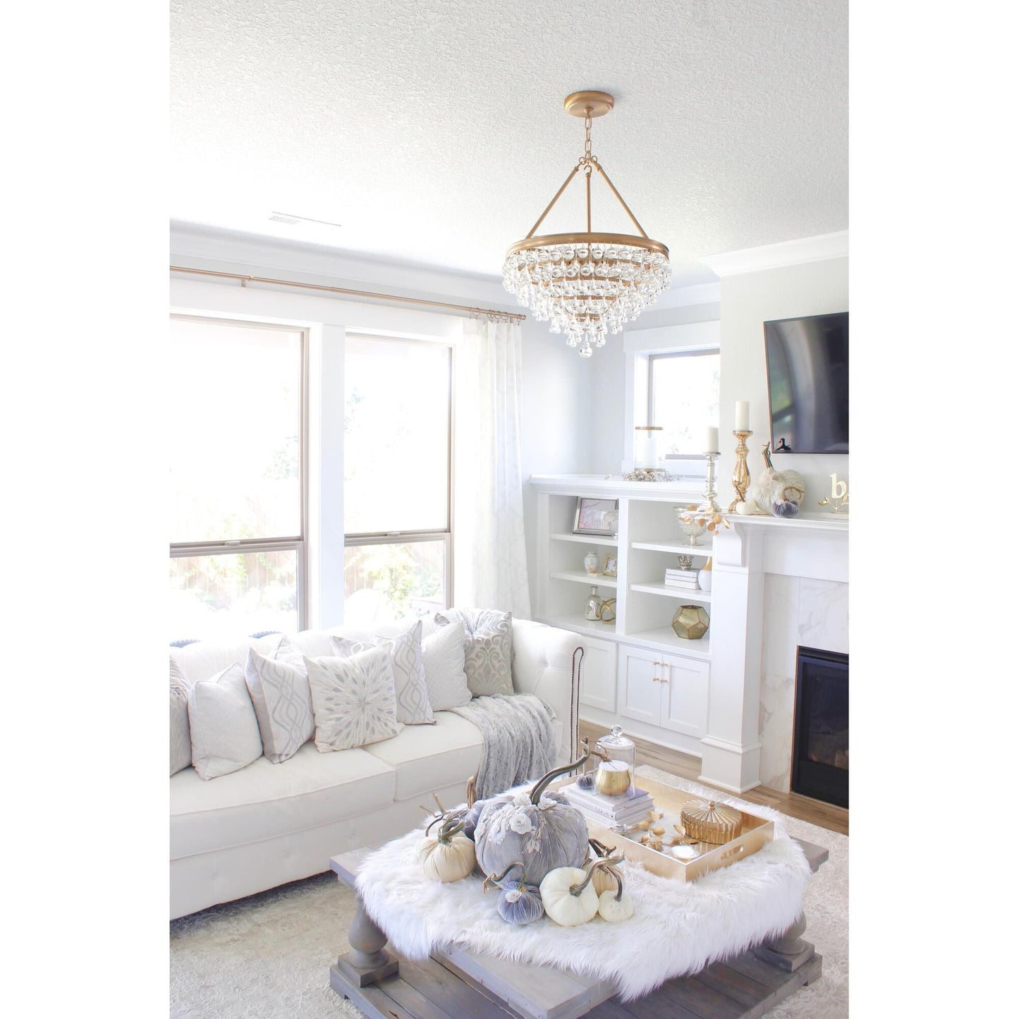 Elegance and glamour meet to illuminate your room with the Calypso collection. Draped in an abundance of smoothed shaped clear drops and balls, this modern collection is the perfect statement piece. Whether it's your living room, dining room, bathroom, or entry, this chandelier will grab people's attention with it's charm.